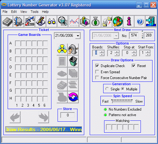 | Random number selection (free) | Checking of winning numbers against your played numbers |